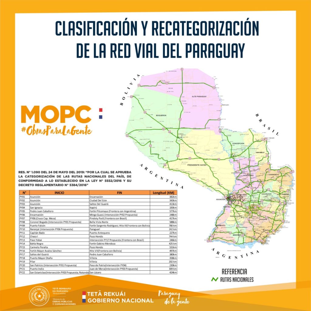 Ayer se presentó oficialmente la nueva clasificación y recategorización de las rutas nacionales de toda la red vial del Paraguay, cuya última actualización data de 1962. La presentación del material estuvo a cargo del ministro de Obras Públicas y Comunicaciones, Arnoldo Wiens.
