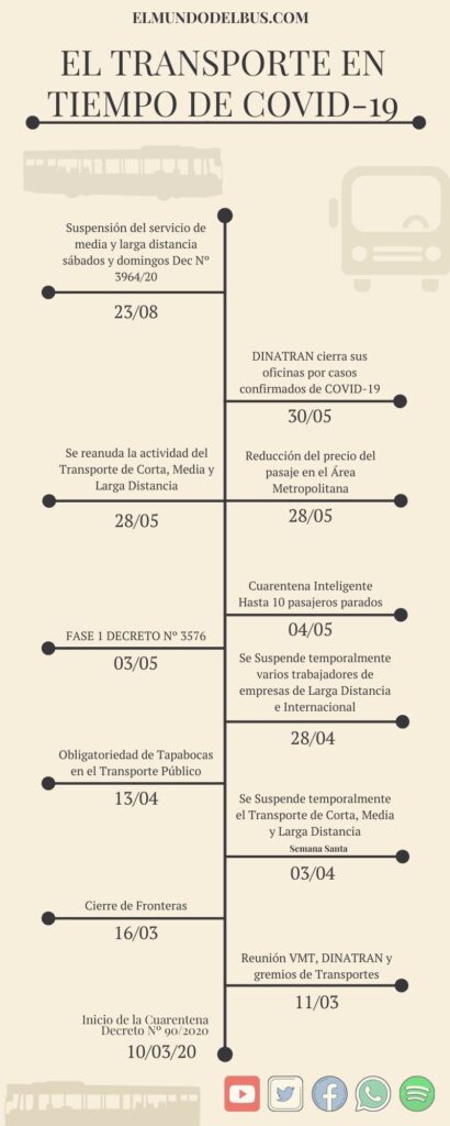 El día 10 de Marzo el Gobierno Nacional a través del Ministerio de Salud y bajo la Resolución S.G.Nº 90/2020 se declara una cuarentena parcial, y se establece como actividad esencial al transporte público de personas